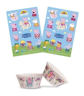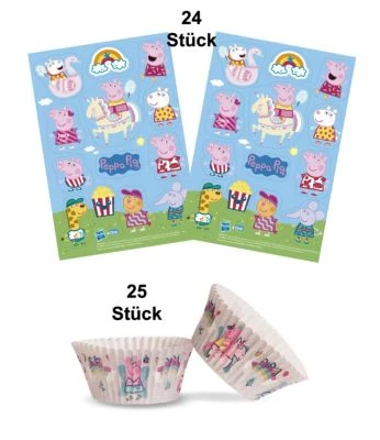 • Ein Set bestehend aus 25 Muffinschalen (5cm Durchmesser, 3cm hoch) im Peppa Wutz Design und 24 Mini-Törtchenauflegern für Cupcakes und Muffins