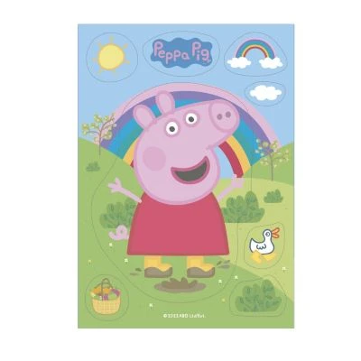 Essbare Tortenaufleger aus Esspapier mit Peppa Wutz-Motiven! Mit Aufleger können Sie Ihre Torten, Kekse, Kuchen, Muffins oder andere Gebäckdesserts ohne großen Aufwand dekorieren und individualisieren. Die Oblate ist aus Esspapier gefertigt, mit Lebensmittelfarben bedruckt und essbar. Eine Anleitung befindet sich auf der Verpackung.