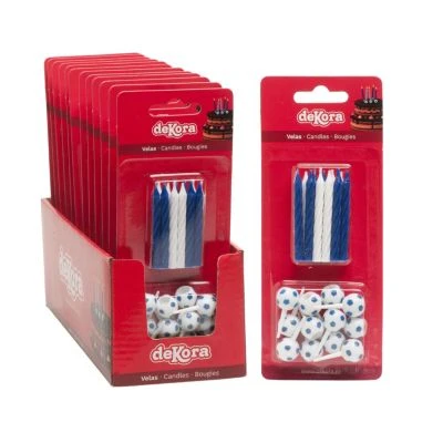 Geburtstagskerzen mit Fußbällen, 12 Stück, blau-weiß
