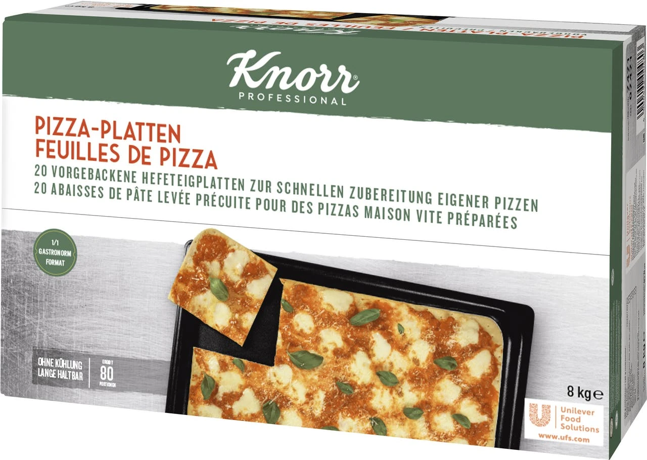 Aus frischem, vorgebackenem Hefeteig. Ideal zur schnellen Zubereitung eigener Pizzen. Jeweils 2 Platten in einer Folie verpackt. Die „Pizza-Platten“ sind schnell belegt und flexibel einsetzbar – z.B. auch für Speckkuchen.