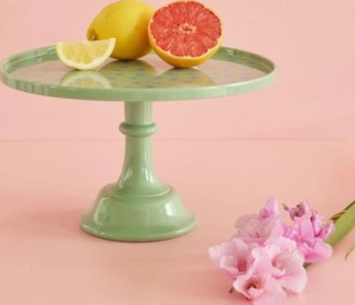 Der Rice Tortenständer besteht aus stabilem, langlebigem Melamin. Die bezaubernde gepunktete Tortenplatte bekommt durch den wunderschön geformten Standfuß einen klassischen Look. So kannst du deine Torte oder deinen Kuchen ansprechend und stilvoll servieren.